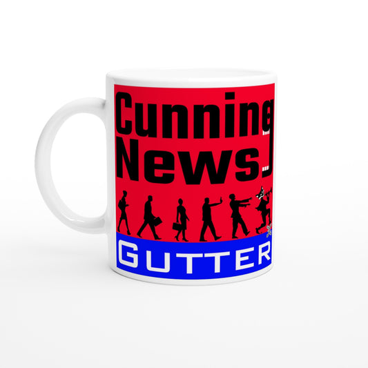 Cunning News Gutter - Logo plus Fox/Wolf (White 11oz Ceramic Mug)